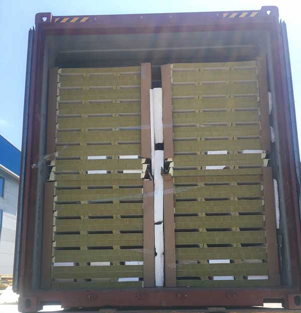Todos los paneles tipo sándwich tienen películas de PVC en la superficie para proteger, y con el extremo de sellado del borde del panel para evitar que se estrellen. Luego, los paneles se empaquetarán en paquetes y luego se cargarán en los contenedores.