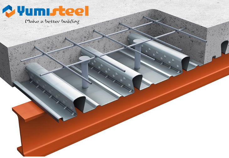 La cubierta del piso funciona como parte de la estructura del edificio para transferir la fuerza horizontal igual que el acero de refuerzo. Por lo tanto, se reduce el acero de refuerzo requerido. Además, el peso de la estructura se reduce.
