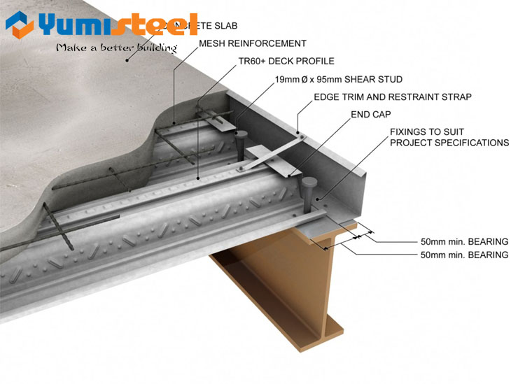 2. Reduce el acero de refuerzo en un 20% a medida que el perfil de la plataforma en sí mismo contribuye en gran medida a la propiedad de refuerzo de tracción.