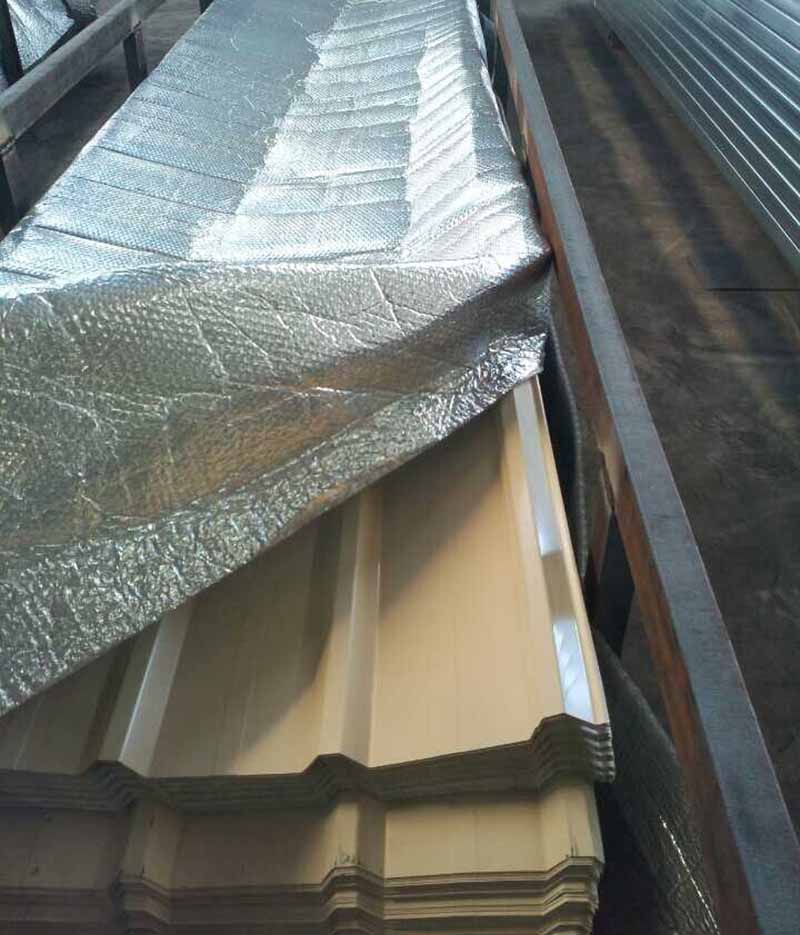 Empaque con tiras de acero en paquetes, y luego cargue. Esto también podría proteger las hojas de bondek de apretarse unas a otras, cuando se envían.