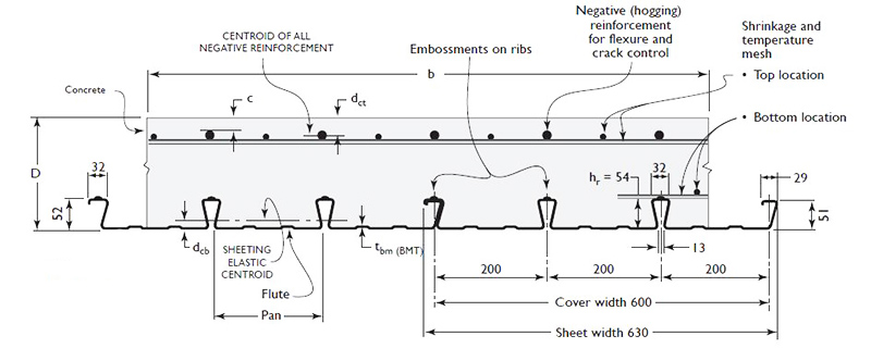 Nuestro informe de prueba de incendio muestra que: YX51-200-600 tiene cierta capacidad de resistencia al fuego durante 120 min. La zona efectiva de nuestra lámina de piso se concentra principalmente en las bridas superiores del perfil de acero. Y las juntas traslapadas están totalmente fundidas en concreto y contribuyen más que las costillas de cola de milano.