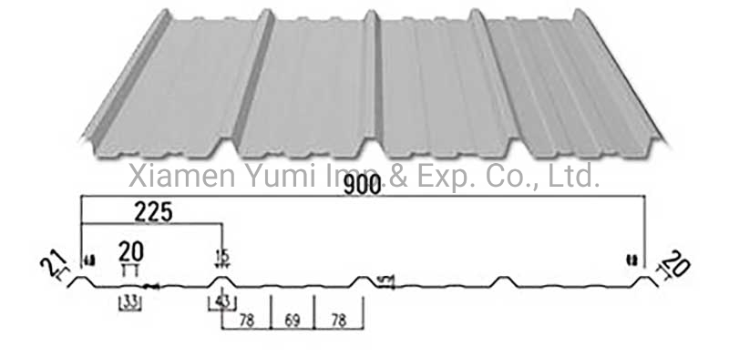 YX15-225-900 es un tipo de revestimientos de acero de piel única, que es ampliamente utilizado en una variedad de edificios, como almacenamiento Aplicaciones industriales, Usos agrícolas y de dependencia del hogar. Nuestras hojas de pared de acero se fabrican con Estándares de alta calidad láminas de acero recubiertas premium.